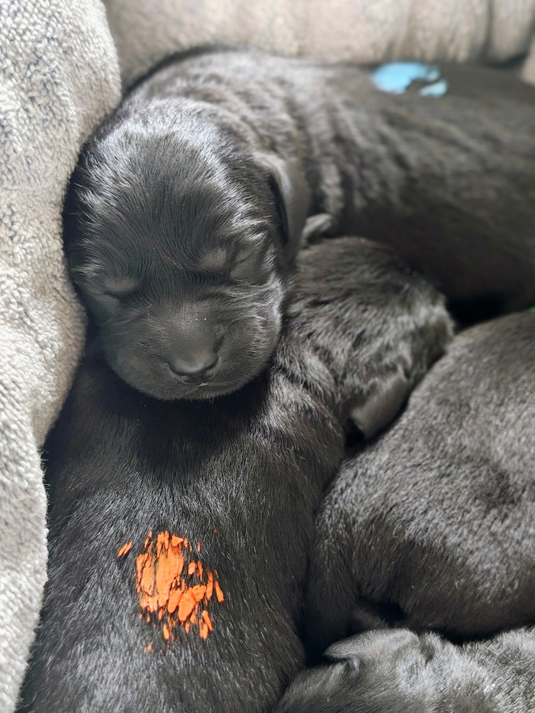 Die Welpen werden Papiere für die jagdliche Leistungszucht erhalten. Es werden ausschließlich schwarze Welpen das Licht der Welt entdecken. Pippa ist reinerbig schwarz, ihre Welpen tragen aber alle die Anlagen zur Weitervererbung der gelben Farbe. Bei entsprechender Verpaarung der Nachzucht wären auch gelbe Welpen möglich. Bevorzugt geben wir die Welpen in Hände, die sie entsprechend ihrer Anlagen, mit jaglicher – oder Dummyarbeit auslasten.